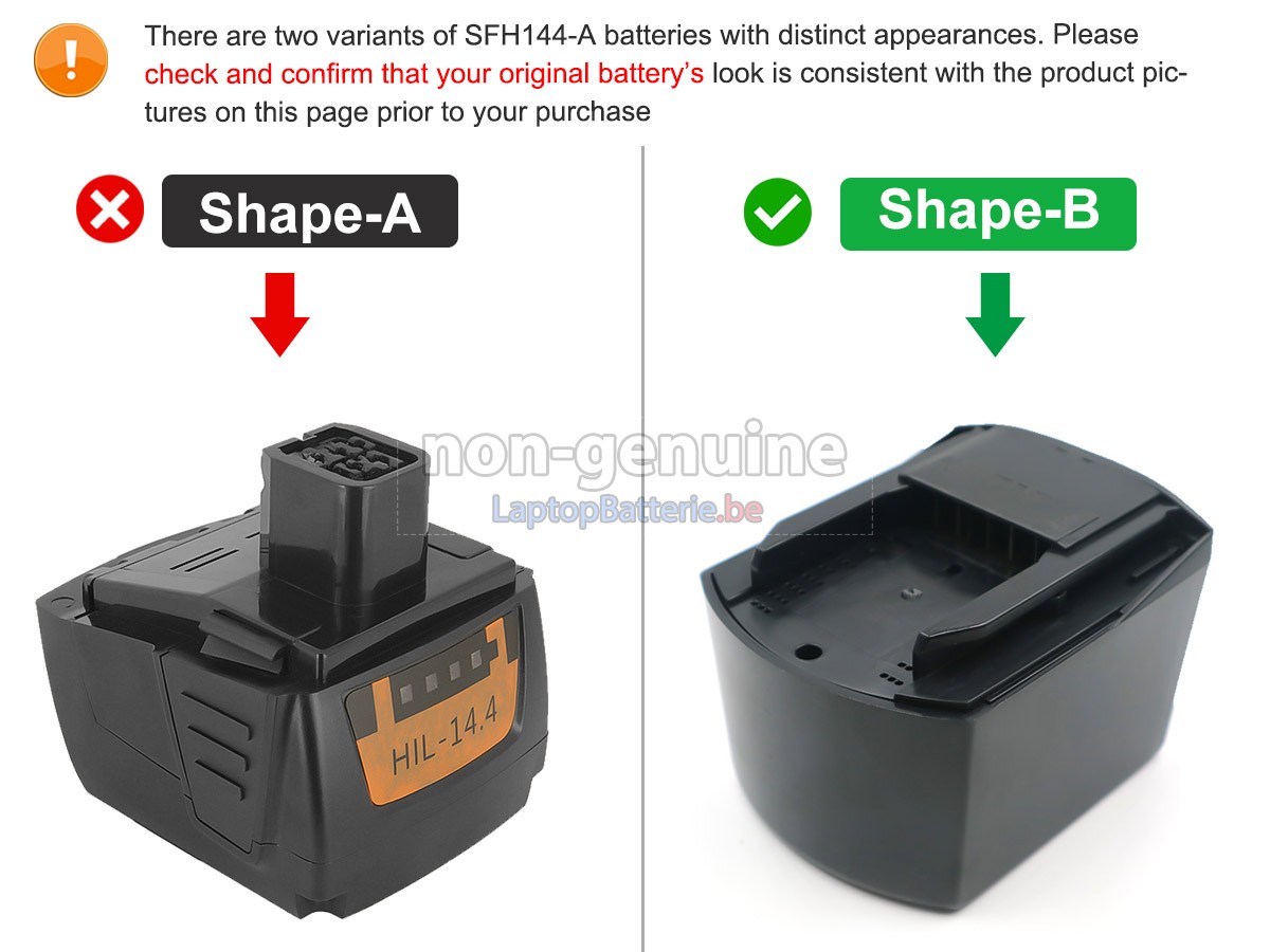 Les modèles compatibles avec la batterie pour Hilti linterna SFL ne sont pas listés complètement. Si vous n'êtes toujours pas sûr de l'adaptation de cette batterie à votre ordinateur portable Hilti, veuillez cliquer sur « Consultation de modèle de batterie » pour obtenir de l'assistance.